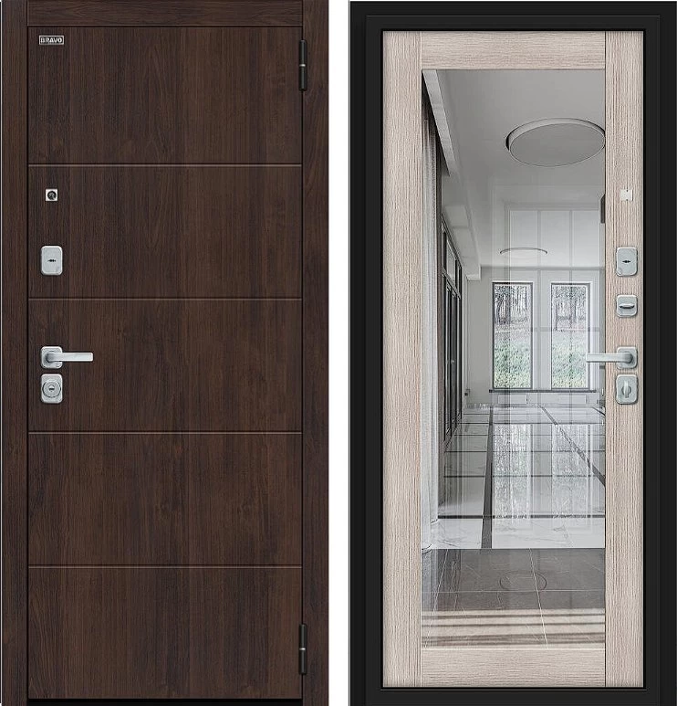Надежная входная Дверь Браво Флэт/BChrome Almon/Cappuccino Melinga премиум класса по цене 38 200 руб. Большая толщина стали защитит от проникновения в ваш дом, квартиру или коттедж. Используется очень качественная фурнитура: замки, цилиндры, ручки, защелки. Покрытие и отделка двери изготовлено под внимательным контролем производителя. Дверь имеет долгий срок службы и гарантию.